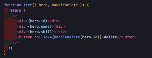 Item 컴포넌트 안에서 클릭시 해당 컴포넌트의 id를 넘겨주는 handleDelete 함수가 실행되도록 하였다.